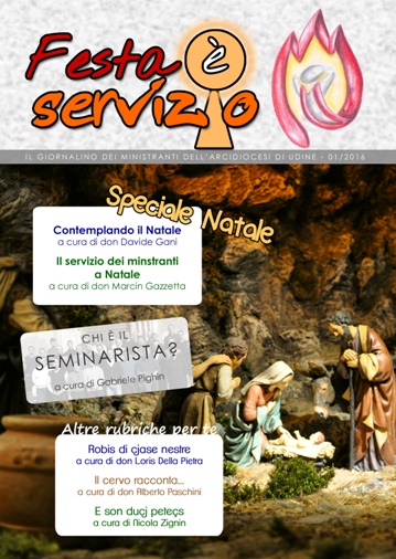 A partire da questo tempo di Avvento 2016 ripartirà la pubblicazione di “Festa è Servizio”, il giornalino dei ministranti, che vedrà la luce alle porte delle festività del S. Natale. Si tratta di un giornalino molto amato e diffuso nella nostra Diocesi, tra i bambini e i ragazzi che svolgono il proprio servizio all’altare. Inoltre, è un strumento semplice e prezioso per mantenere il legame e la comunione tra tutti i ministranti, dandoci l’opportunità di approfondire le celebrazioni dell’anno liturgico e alcuni aspetti della nostra realtà diocesana, senza dimenticare lo spirito leggero di questo strumento.
